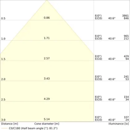 Der Abstrahlwinkel bezeichnet den Winkel, in dem das Licht aus der Lichtquelle ausgestrahlt wird. Er wird in Grad (D) angegeben. Je geringer die Gradzahl des Abstrahlwinkels ist, desto kleiner ist auch der Durchmesser des Lichtkegels, den die Lichtquelle produziert.