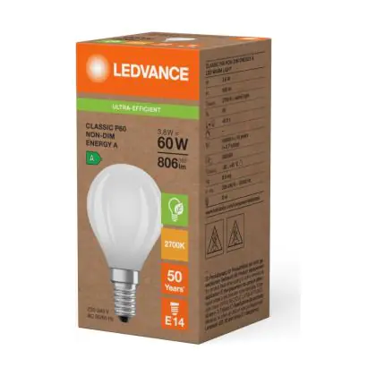 Ledvance LED Classic E14 Birne Fadenlampe Matt 3.8W 806lm - 827 | Ersatz Für 60W