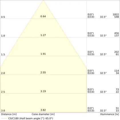 Der Abstrahlwinkel bezeichnet den Winkel, in dem das Licht aus der Lichtquelle ausgestrahlt wird. Er wird in Grad (D) angegeben. Je geringer die Gradzahl des Abstrahlwinkels ist, desto kleiner ist auch der Durchmesser des Lichtkegels, den die Lichtquelle produziert.