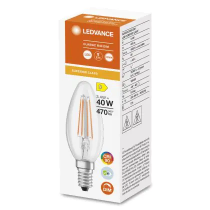 Cette ampoule rétro Ledvance Superior Classic LED E14 Bent-Tip Bougie Filament Claire 3.4W 470lm - 940 | Dimmable - Meilleur rendu de couleur est l’alternative idéale pour la remplacement de votre ampoule classique de 40 W. La technologie LED intégrée vous offrira de nombreux avantages. Les ampoules à incandescence traditionnelles ont une durée de vie limitée. Cette alternative LED vous permettra de profiter d’un éclairage durable et fiable.