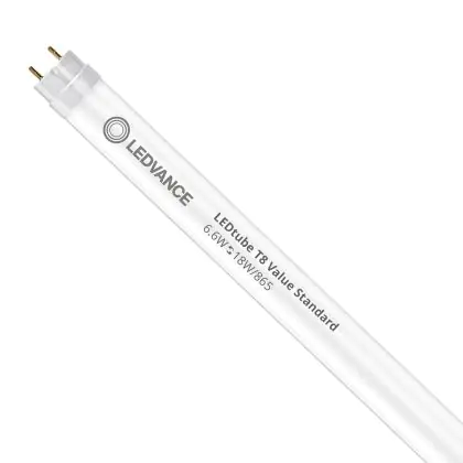 Ce tube LED Ledvance tube LED 60cm | 6500K 6.6W - Value est l’un des produits les plus éconergétiques en remplacement des tubes T8 classiques. Avec ce tube LED vous êtes donc assuré de sa qualité. Avec une puissance de seulement 6.6 W, ce tube LED a la même intensité lumineuse qu’un tube classique qui consomme 18 W.