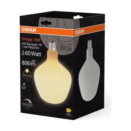Cette ampoule Osram Vintage 1906 LED E27 Special Filament Dépolie 7.3W 806lm - 827 | Dimmable - Remplacement 60W avec son efficacité lumineuse de lumen par watt vous permettra de profiter d’un éclairage de qualité. Avec sa durée de vie de 15000 heures, vous n’aurez pas à vous soucier de son remplacement avant quelques années.