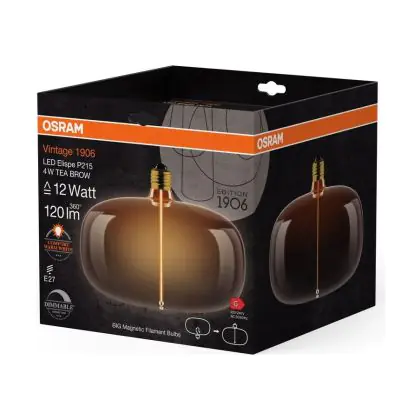 Cette ampoule Osram Vintage 1906 LED E27 Special Filament Smoke 4W 120lm - 818 | Dimmable - Remplacement 15W avec son efficacité lumineuse de lumen par watt vous permettra de profiter d’un éclairage de qualité. Avec sa durée de vie de 15000 heures, vous n’aurez pas à vous soucier de son remplacement avant quelques années.